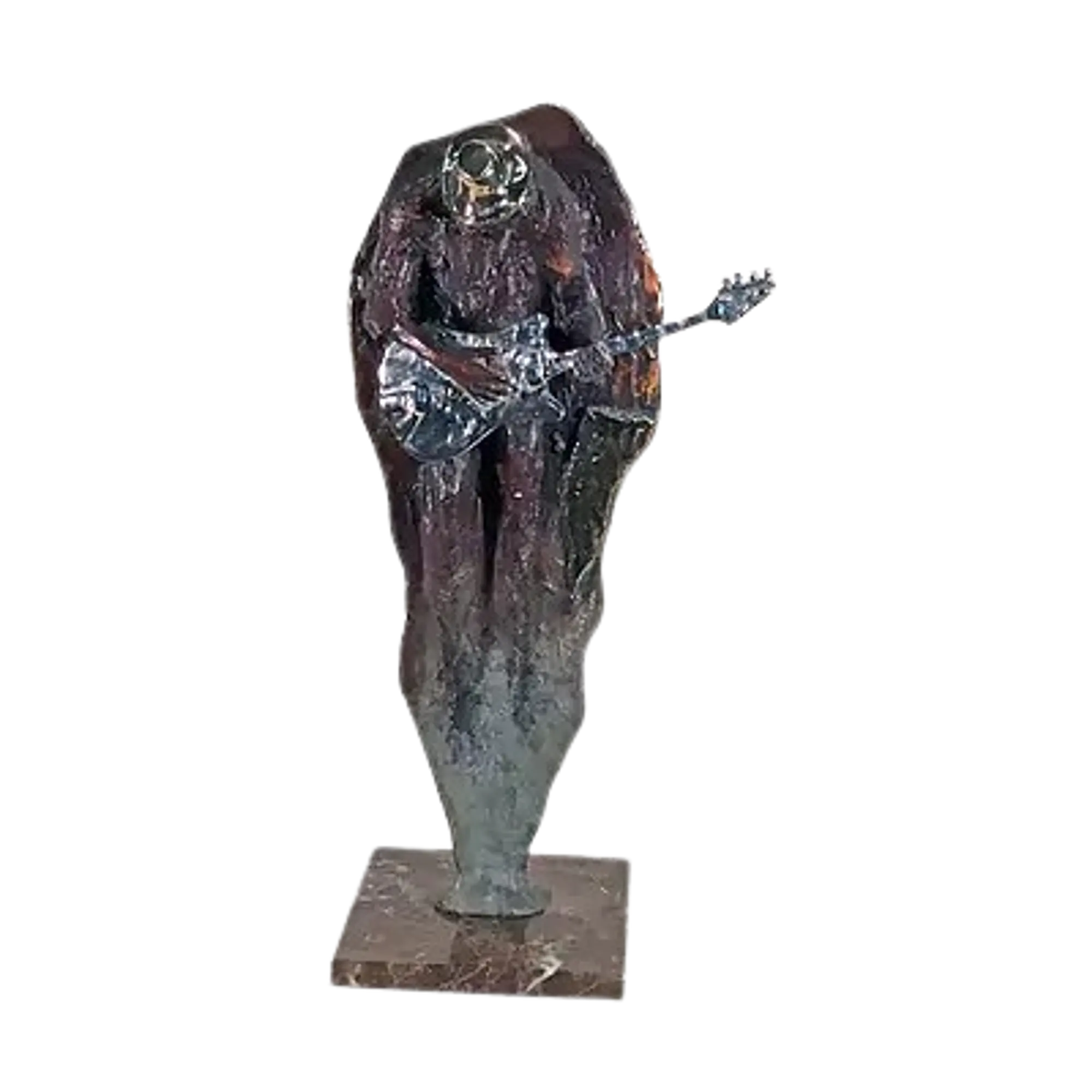 Blues After Midnight is a hauntingly soulful bas relief sculpture that channels the emotional depth of jazz after dark. With an abstract, dreamlike form, Ed captures a lone guitarist wrapped in shadow and sound, lost in the rhythm of his soul. This piece doesn’t just depict music—it feels like music, drawing viewers into a quiet, powerful space of reflection and resonance.