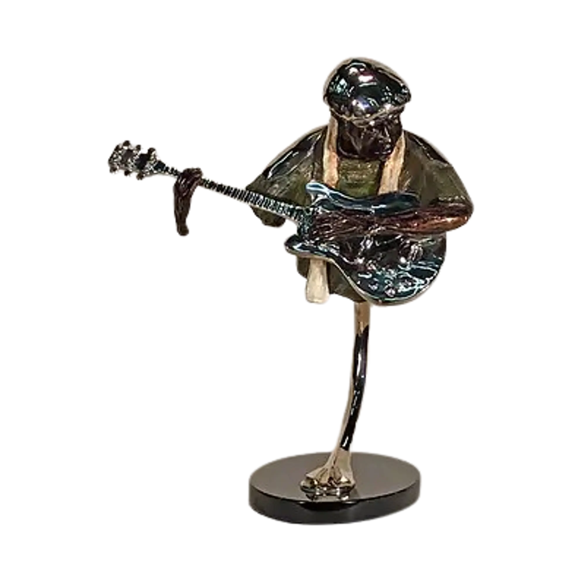 From the iconic Jazz: An American Art Form series, Jazz Guitar radiates the smooth cool of a late-night jam. With his signature use of negative space, Ed captures a guitarist deep in the groove—relaxed, focused, and channeling rhythm through polished bronze. Every curve and detail speaks to the spirit of jazz: improvisational, expressive, and timeless.