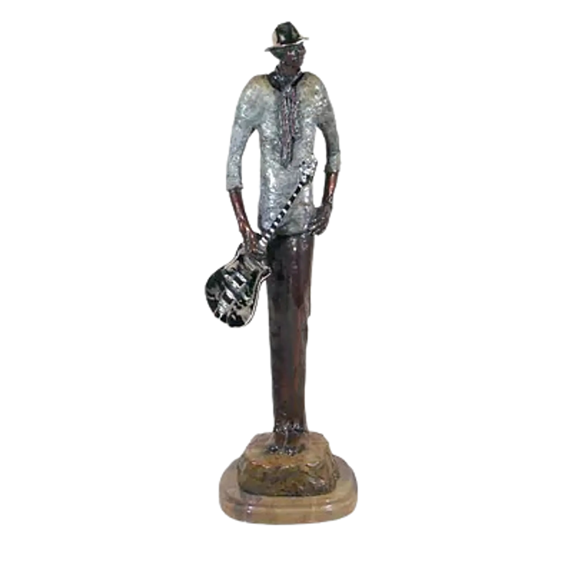 Laid-back and lost in thought, Jazz On My Mind captures the mellow soul of a guitarist basking in the afterglow of a heartfelt performance. As a companion to After Hours and Night Sounds, this piece embodies the quiet power of jazz—the rhythm that lingers long after the last note fades. Ed Dwight’s sculpture hums with cool energy and timeless style.