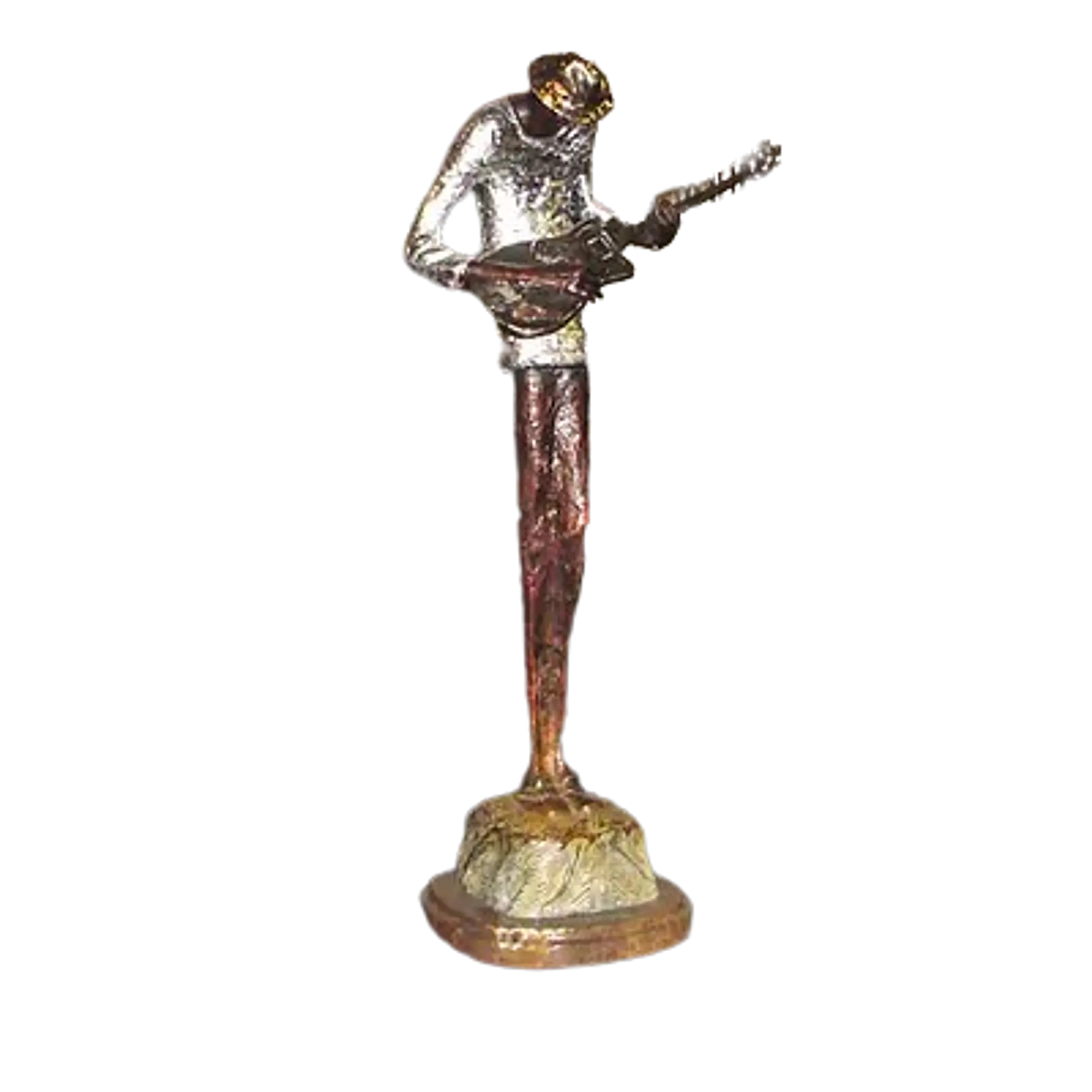 Night Sounds captures the effortless cool of a silky smooth jazz club, where every note tells a story. With elegant lines and polished detail, Ed Dwight brings a lone guitarist to life—head bowed, fingers in motion, soul on display. This sculpture speaks in rhythm and mood, radiating emotion through bronze.