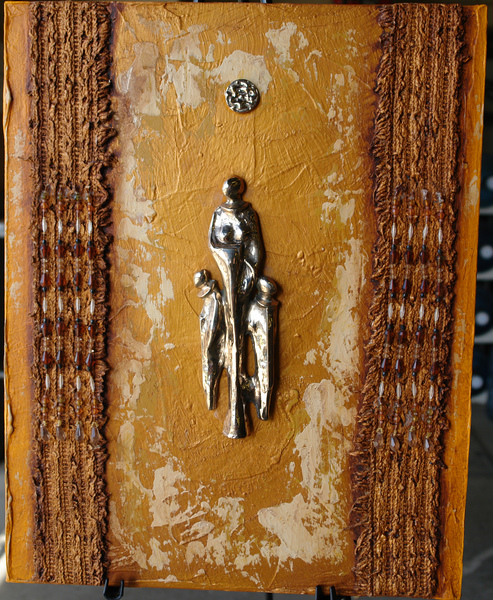 Ed’s Sun Over the Serengeti captures the beauty of Africa in its most poetic form. With Ed's glowing bronze Three's Company standing as a bas relief beneath a radiant sun, this mixed-media masterpiece fuses sculpture and painting into a single, soulful composition. The earthy textures and golden palette evoke warmth, dignity, and ancestral pride.